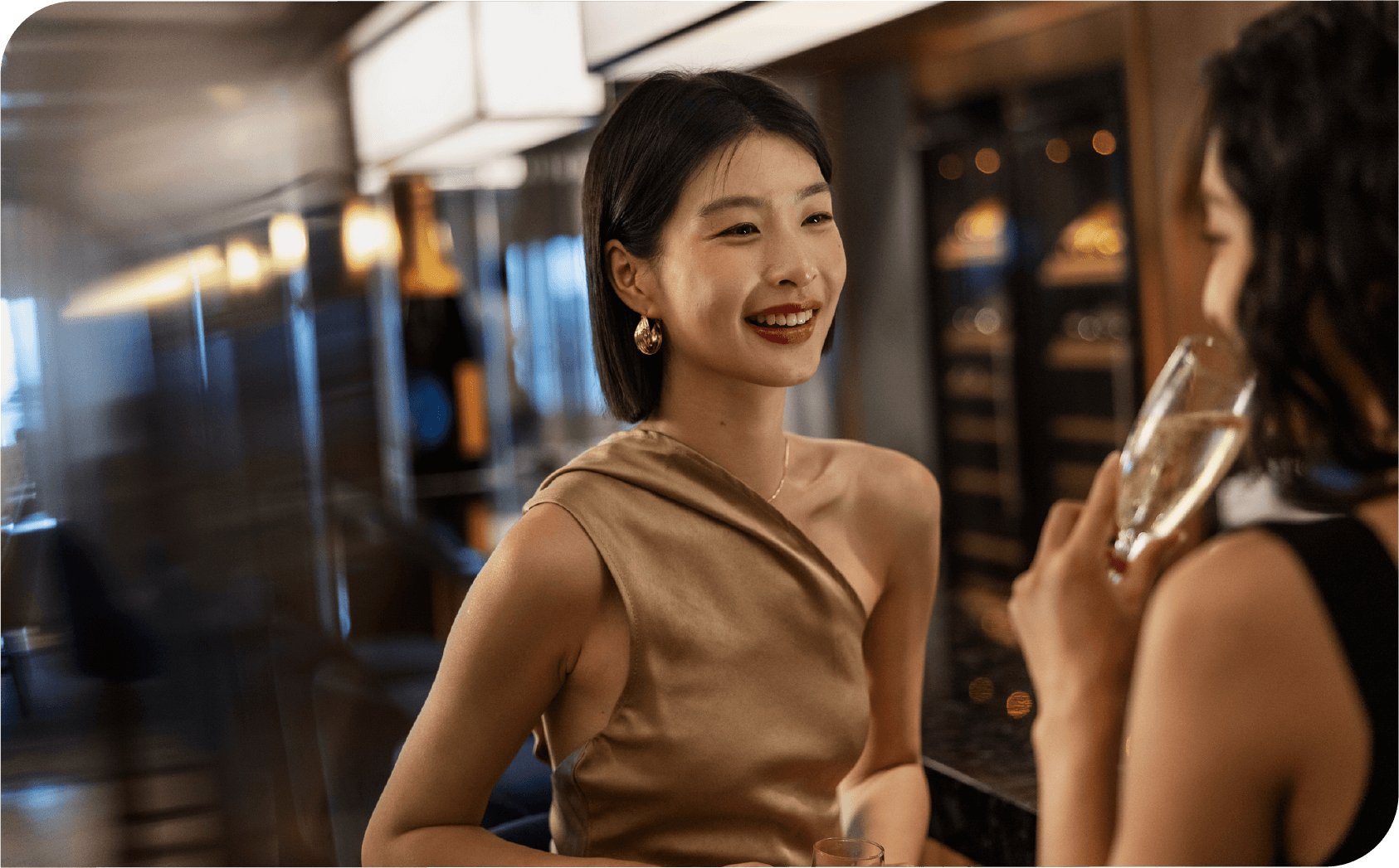 在 270 度景觀廳,先來一杯手工雞尾酒,微醺之間抬頭四望,你會忘了自己身在何處——因為眼前的景色早已打破想像。傍晚時分,現場音樂與舞台演出登場,橫跨整面落地窗的多媒體視覺盛宴瞬間點亮全場,讓你目不轉睛。夜幕降臨,這裡華麗轉身成為熱力四射的夜總會,燈光、音樂與人群的能量推向最高點。